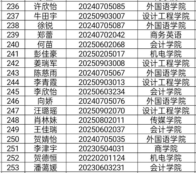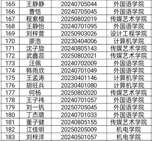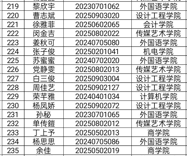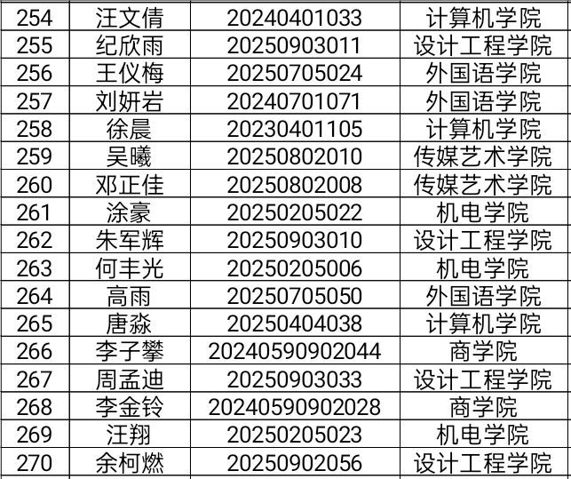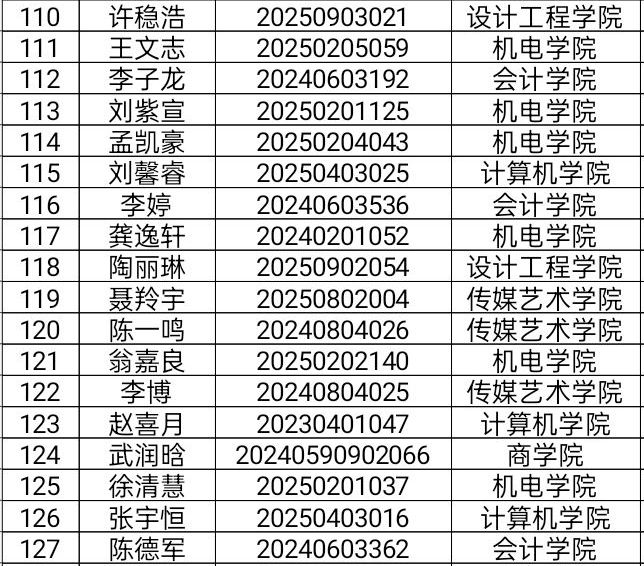 大学生心理健康教育中心将于2025年12月3日14:00,在文澜报告厅(晴川小剧场)开展2025年“10·25”心理健康活动月“’Z世代’的我和我们”心理情景剧决赛,根据2025年11月24日线上报名情况,现将成功取得观赛入场券的人员名单公示如下:
