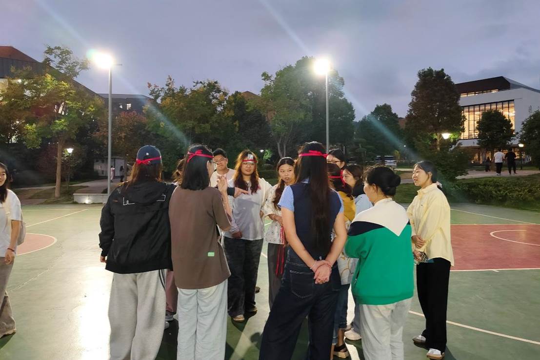 自选项目则包括“东指西看”“不要说挑战”和“一起动起来”三项,每位同学任选两项参与。“东指西看”考验反应与专注,工作人员快速指示方向并辅以语言干扰,现场时而因“指东向西”的失误爆发出阵阵笑声,也因敏捷的“反向操作”引来连连喝彩。“不要说挑战”则像一场轻松的心理博弈:同学们头戴标注“禁忌行为”或“禁忌话语”的卡片(部分还设有“陷阱卡”),既要巧妙引诱他人“触禁”,又要谨防自己“中招”。互动中妙趣横生,惩罚环节更是将气氛推向高潮。“一起动起来”鼓励同学们自由选择运动方式,操场上投篮的身影、羽毛球场上挥拍的身姿,无不洋溢着运动的纯粹快乐。