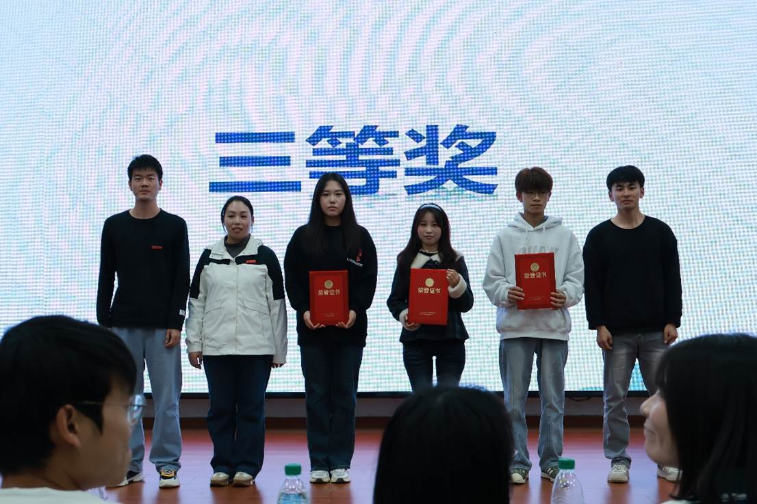 数媒2404班的《归途》和数媒2503班的《迷网》获得二等奖,由团总支书记,辅导员杨好胜老师,设计工程学院学生党支部书记、辅导员刘召老师颁奖。