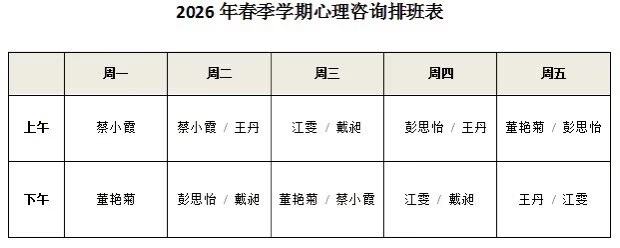 2.心理咨询费用:对于我校本校学生,不收取任何费用;