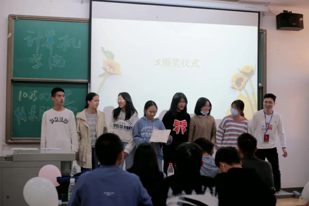 拒绝emo队的《我的大学生活》、紫薇队的《面具》荣获优秀奖,辅导员李攀老师、谭娇老师分别为这些获奖队伍颁奖。